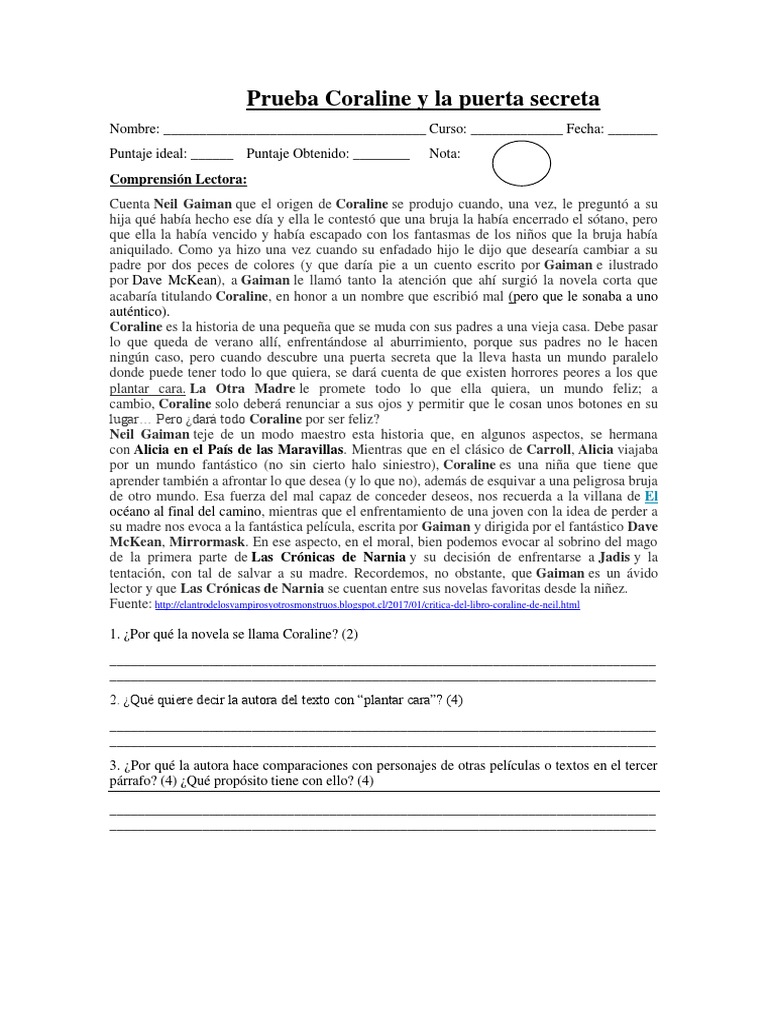 Libro Coraline Y La Puerta Secreta - Resena Coraline Neil Gaiman Los Mundos De Cami / Conductor y reportero monstruos vs.. Coraline y la puerta secreta: Pour moi, il y avait quelque chose d'irrésistiblement drôle dans ce nom et dans l'idée qu'une femme aussi brillante puisse être une parente éloignée du risible. Calabazas mutantes del espacio exterior: Coraline 2009 yekina pavón cantante de teatro pulgarcita: Sapo (canción) 1994 yordi rosado: